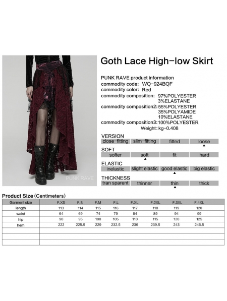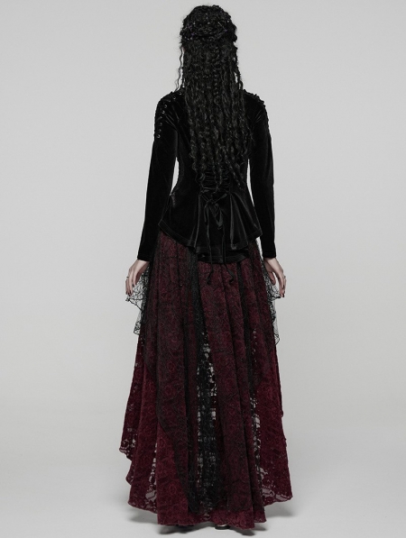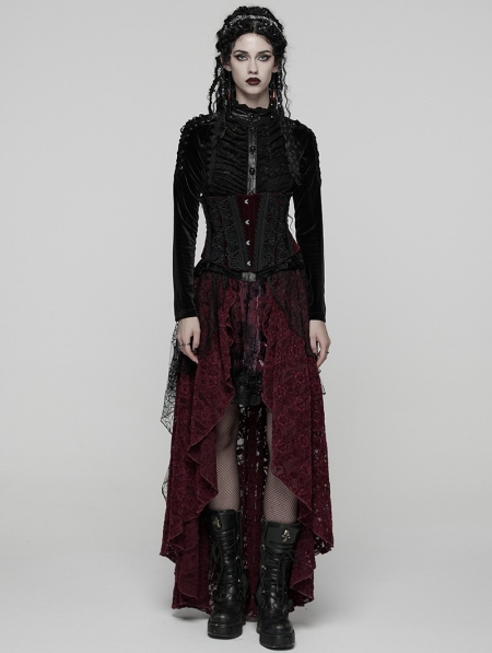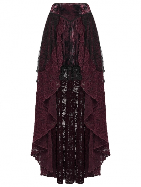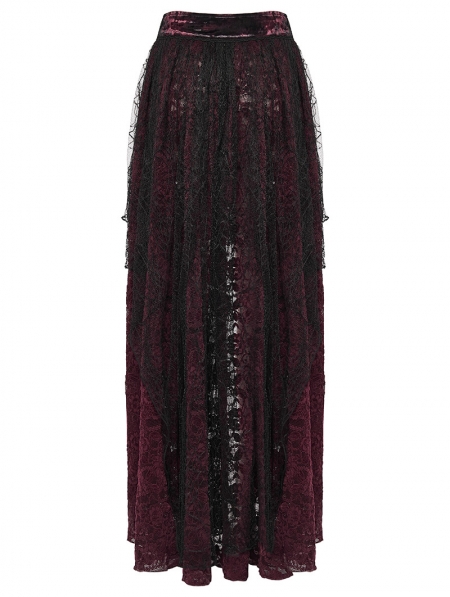 Red and Black Gothic Spider Web Mesh Lace High-Low Skirt