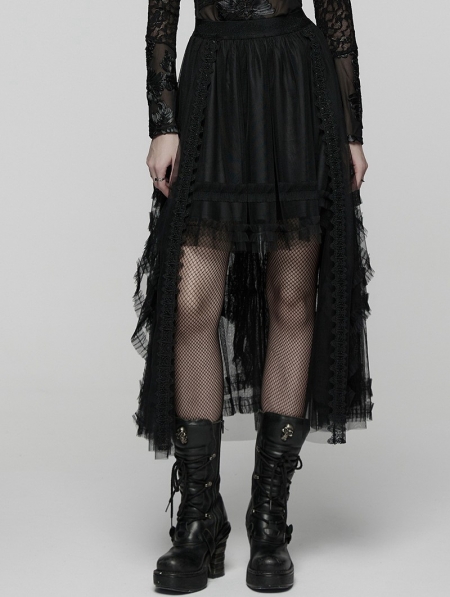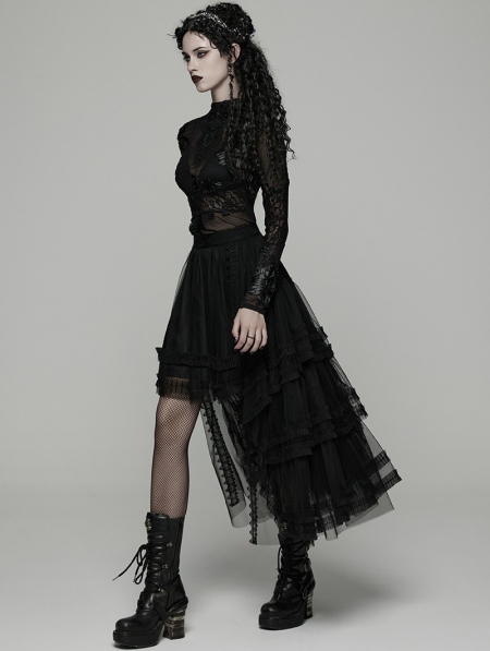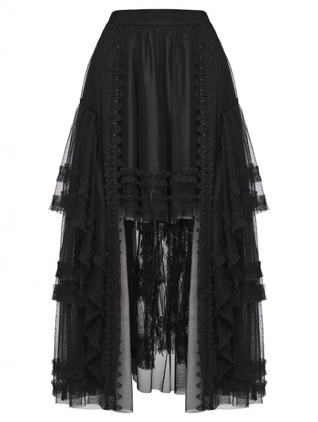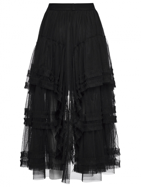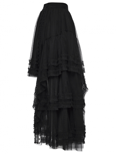 Black Gothic Layered Mesh Irregular High-Low Skirt