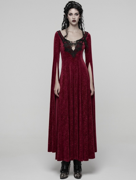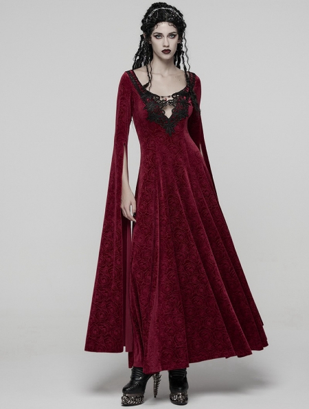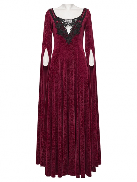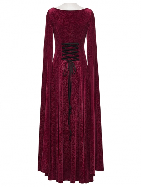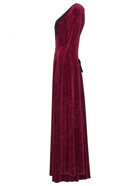 Red Sexy Gothic Historical Inspired Rose Velvet Long Dress