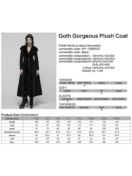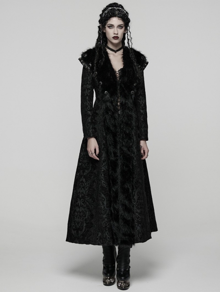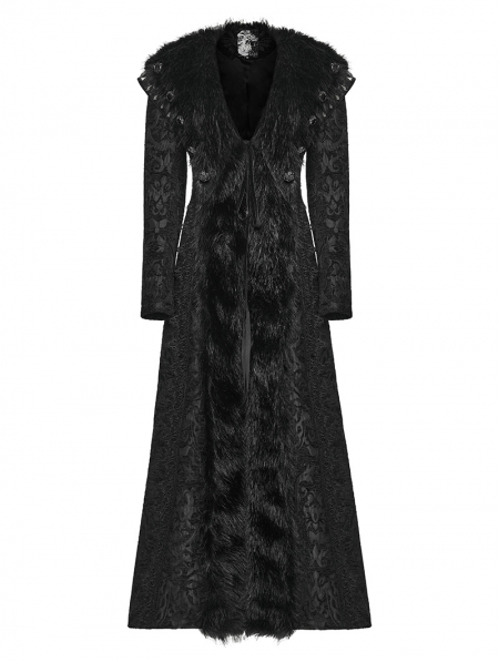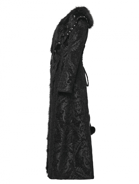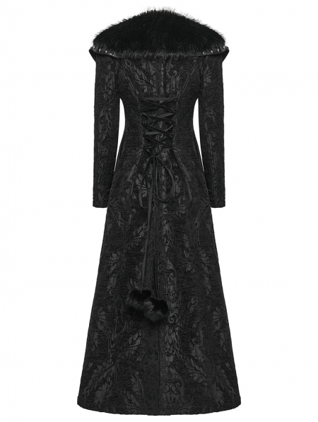 Black Retro Gothic Plush Trim Jacquard Long Winter Coat for Women