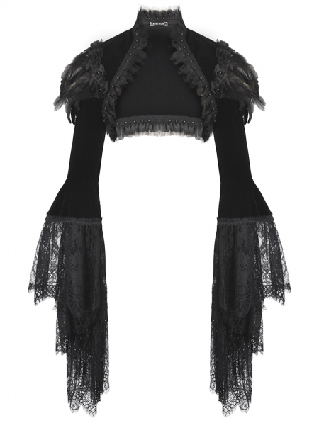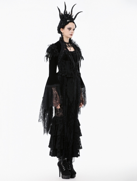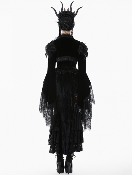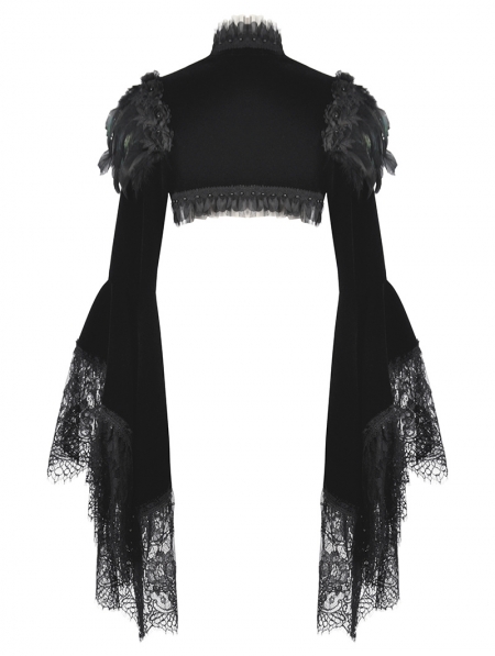 Black Noble Gothic Velvet Raven Feather Cape for Women