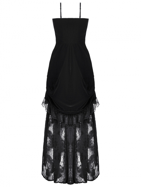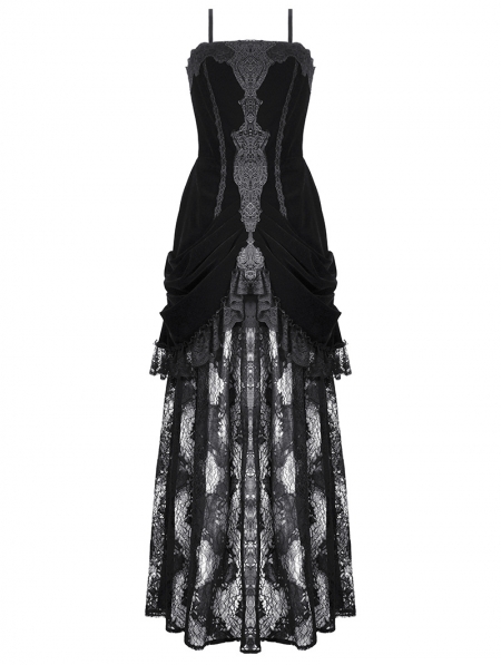Black Gothic Embroidered Lace Velvet Bustier Long Dress