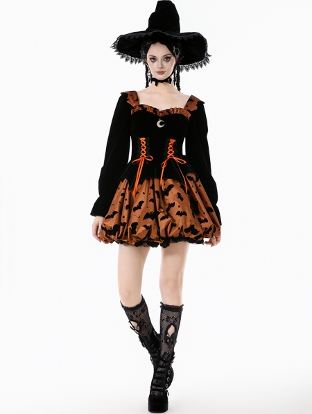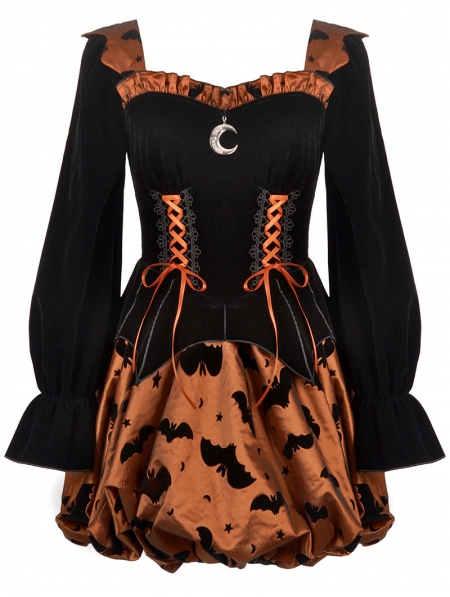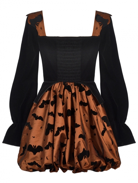 Brown and Black Gothic Midnight Bat Pumpkin Halloween Short Dress