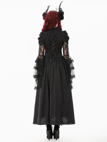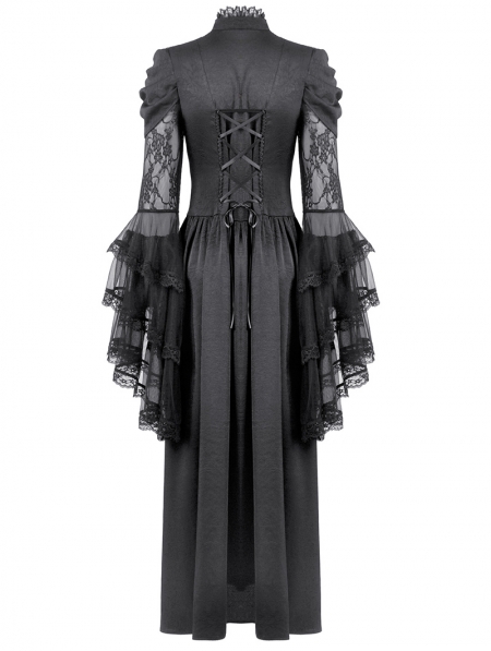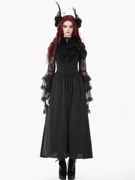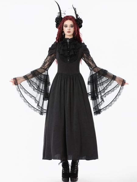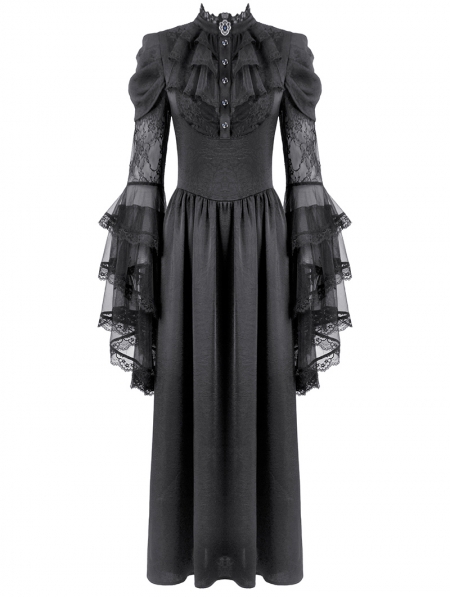 Black Gothic Victorian Ruffled Mesh Flared Sleeve Long Dress