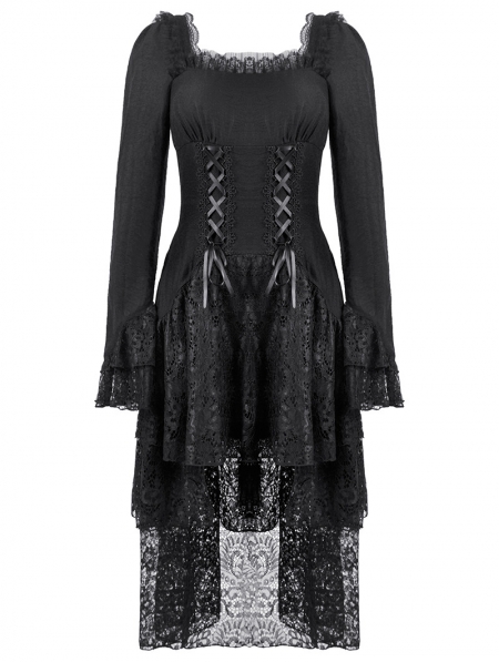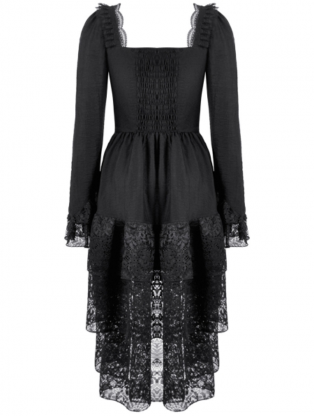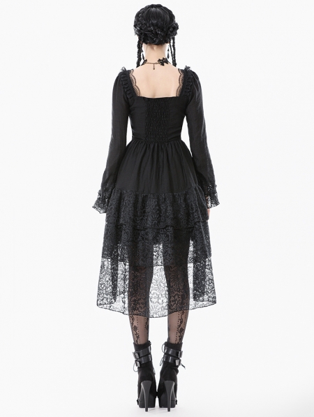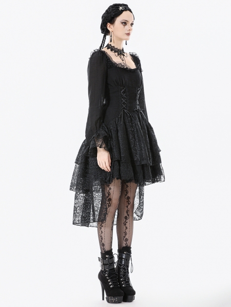 Black Romantic Gothic Lace High-Low Tiered Dress