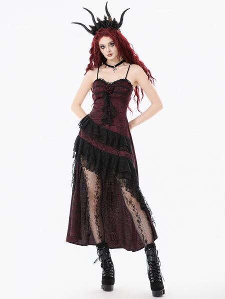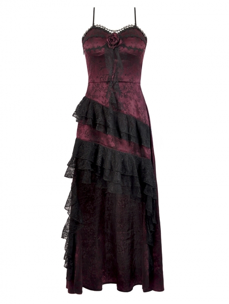 Red Rose Gothic Asymmetric Layered Lace Ruffle Dress