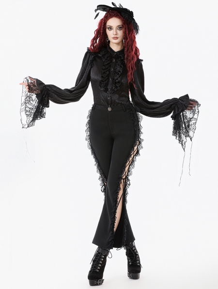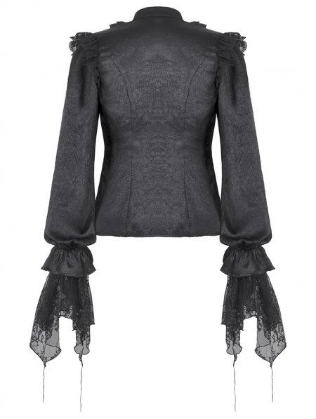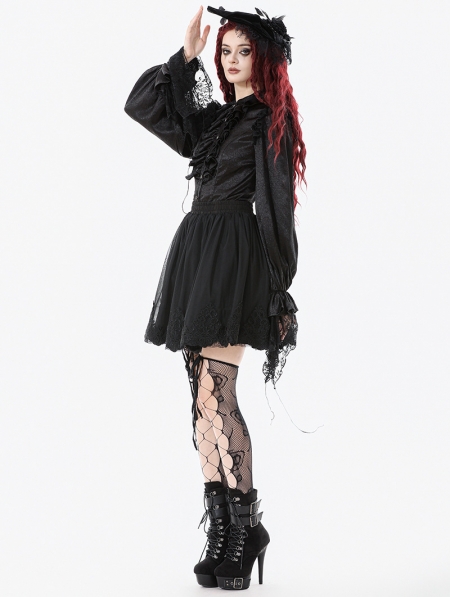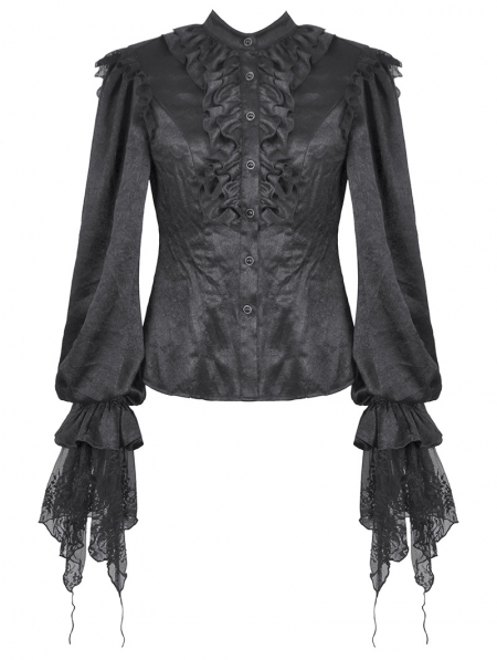 Black Ruffle Gothic Lantern Sleeve Blouse for Women
