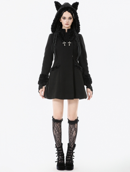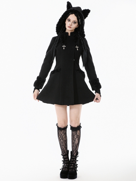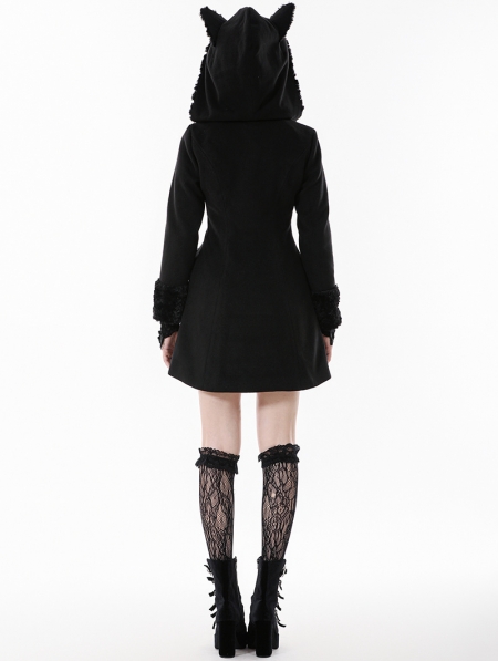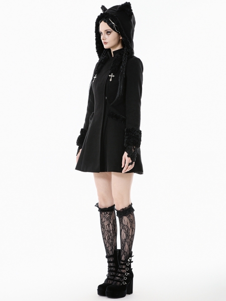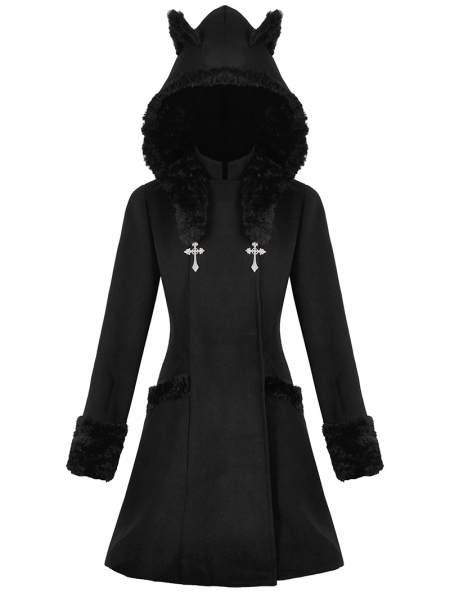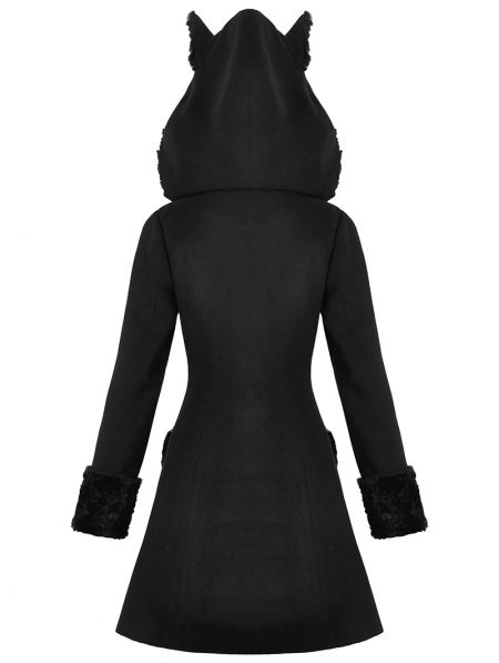 Black Gothic Cute Cat Ear Fuzzy Hoodie Coat for Women