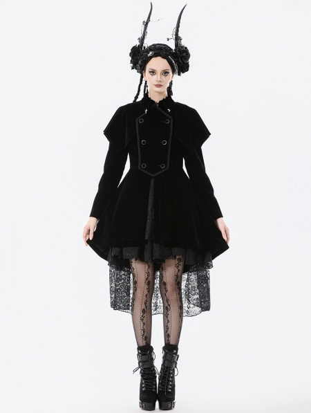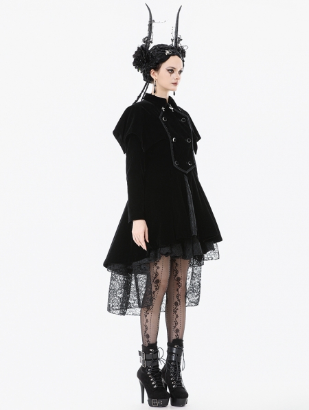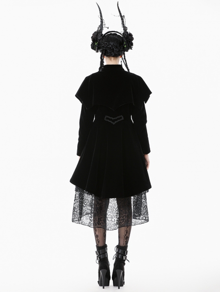 Black Retro Gothic Bat-Winged Witch Velvet Coat for Women