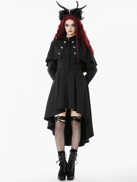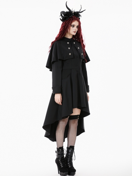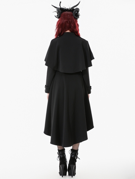 Black Mystic Retro Gothic High-Low Cape Coat for Women