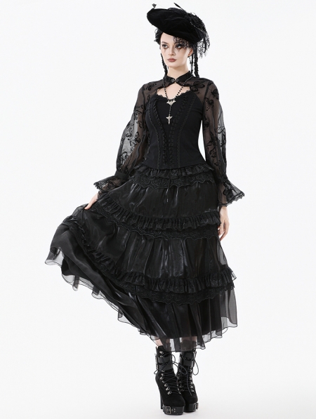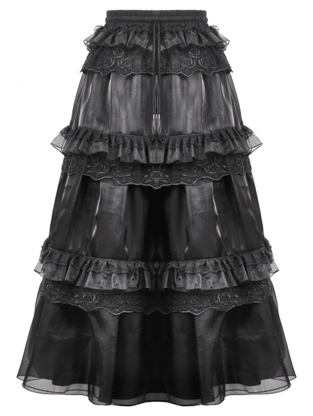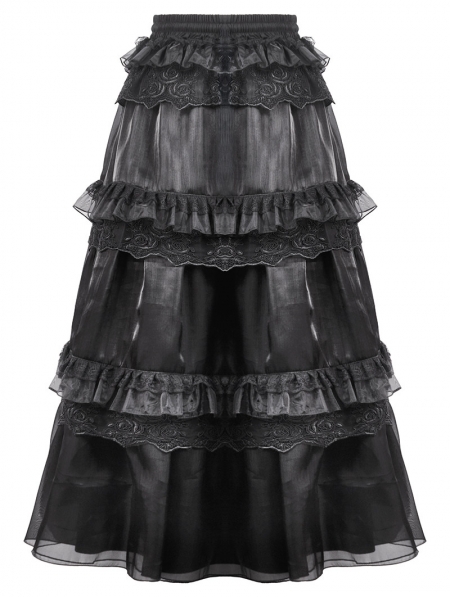 Black Gothic Lace Embroidered Layered Maxi Petticoat Skirt