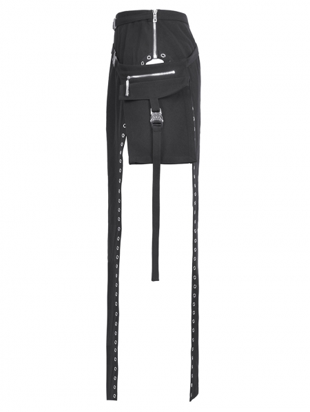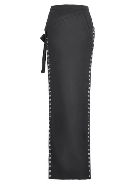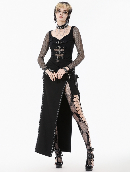 Black Sexy Gothic Punk Buckle Strap High-Slit Long Skirt