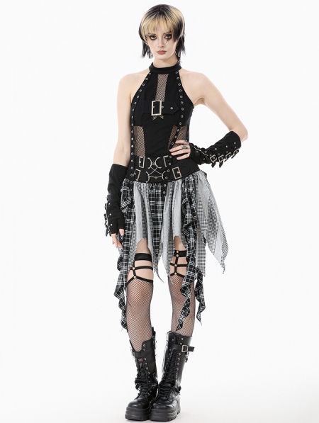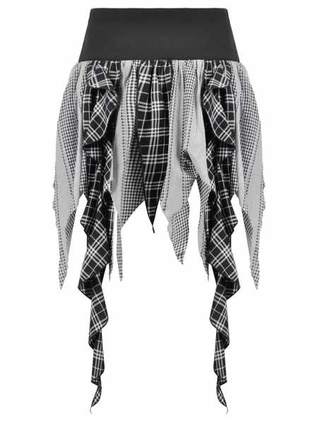 Black and White Plaid Patchwork Locomotive Gothic Punk Skirt