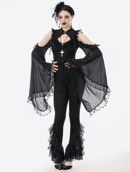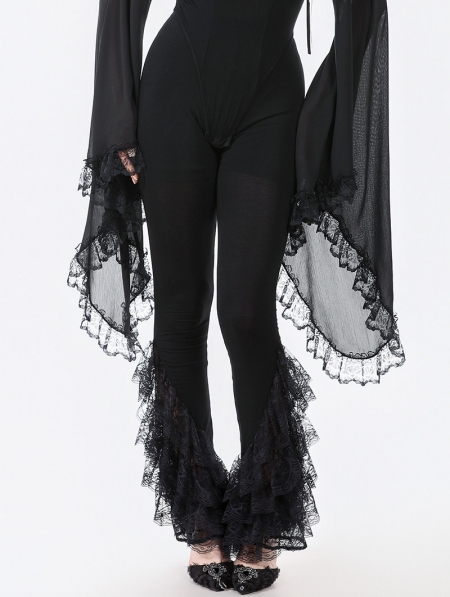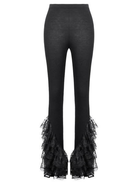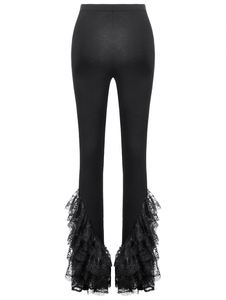 Black Gothic Multi-Layer Lace Trim Flared Leggings for Women