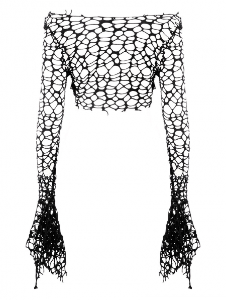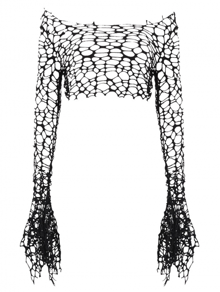 Black Gothic Punk Irregular Distressed Crop Top for Women