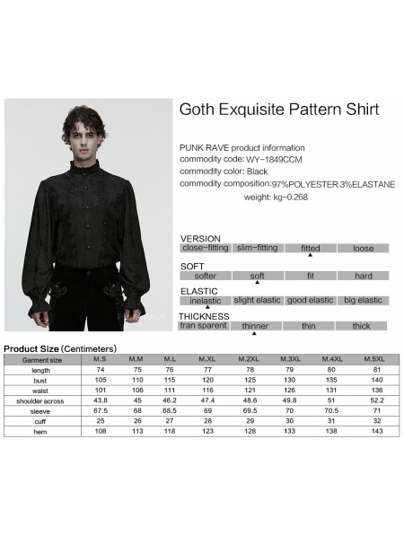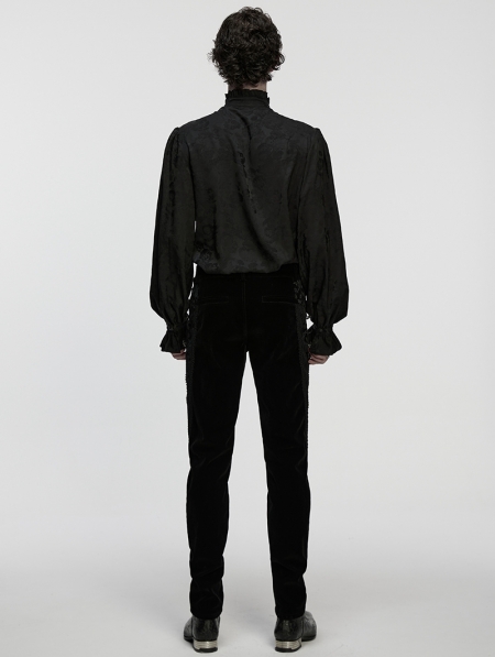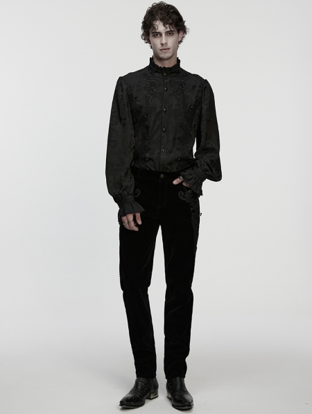 Black Vintage Gothic Embroidery Pattern Shirt for Men