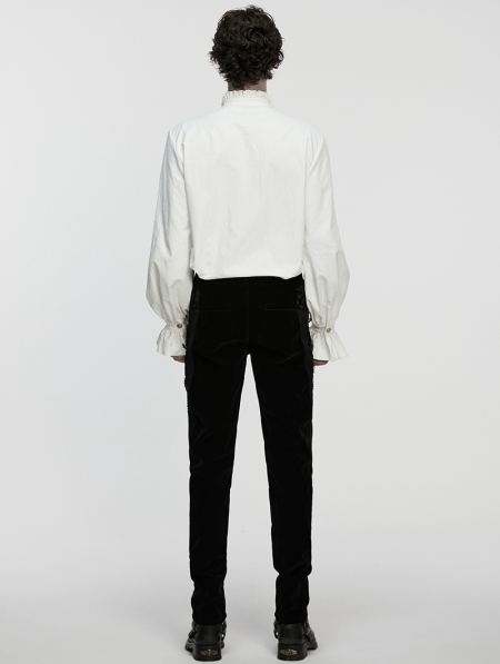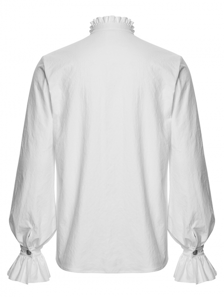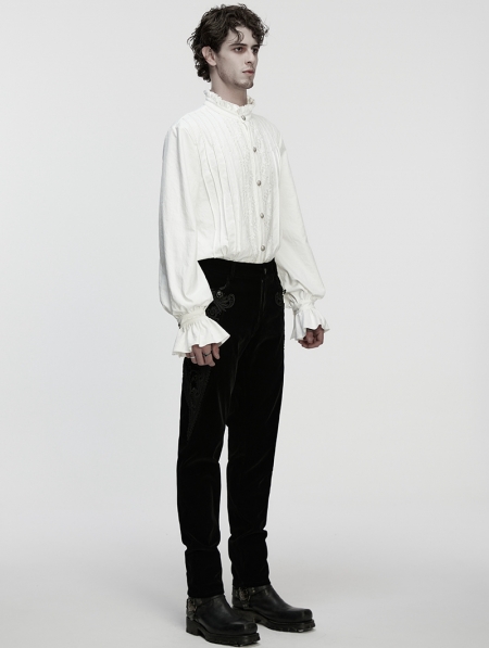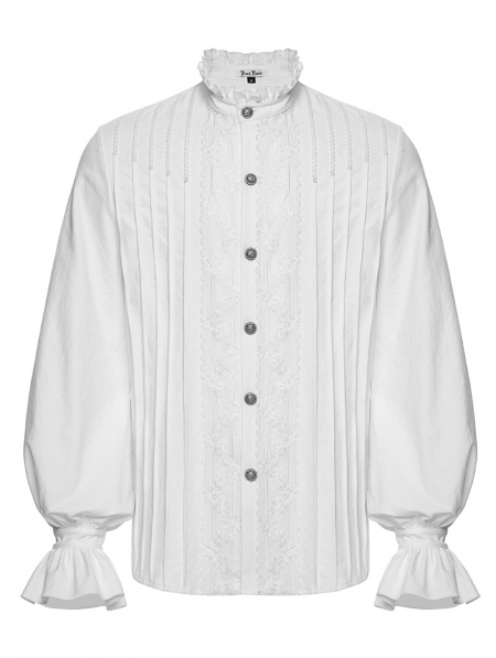 White Gothic 3D Pleated Lace Embroidered Shirt for Men