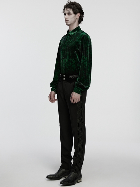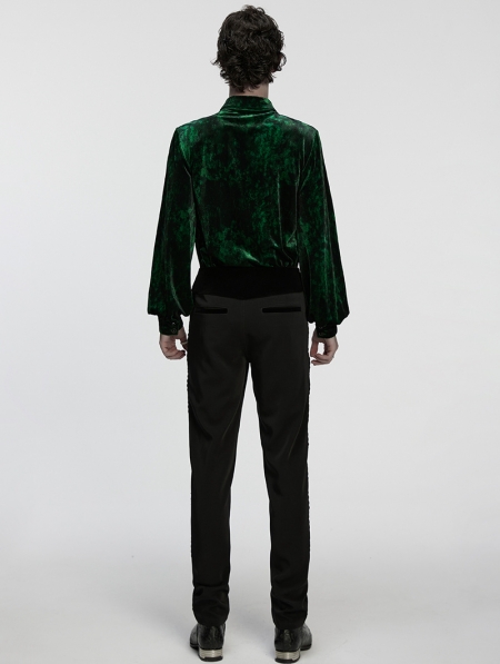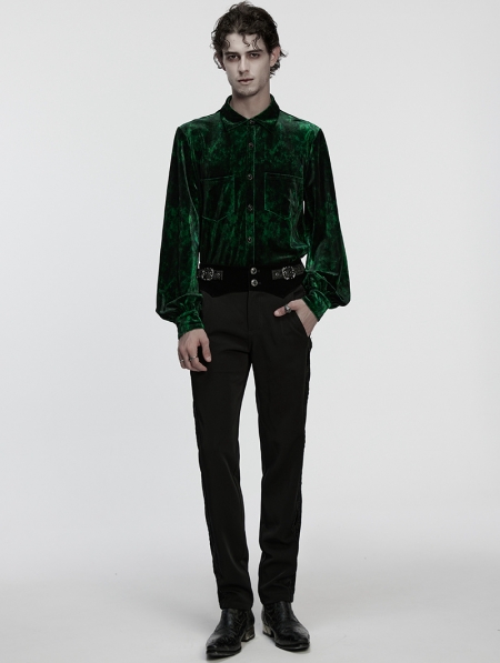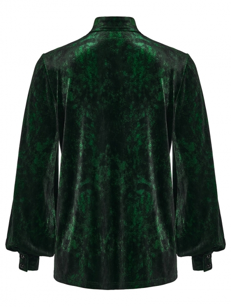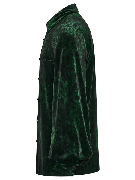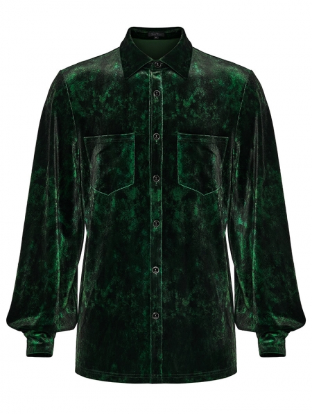 Green Daily Gothic Velvet Button Up Shirt for Men