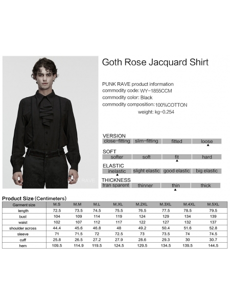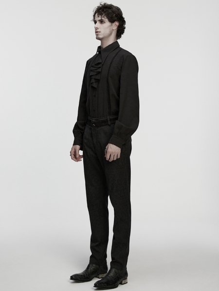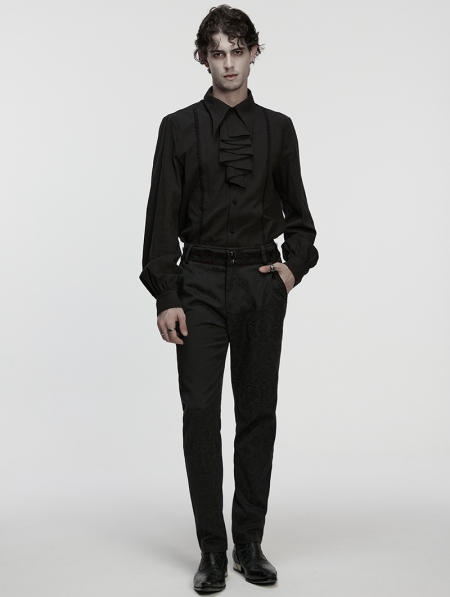 Black Gothic Rose Jacquard Men's Shirt with Detachable Collar