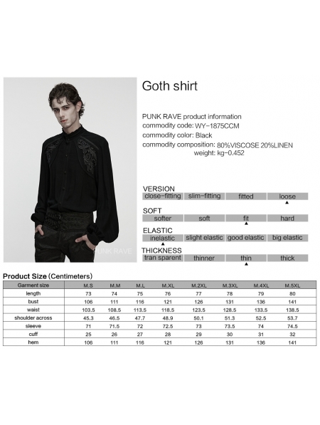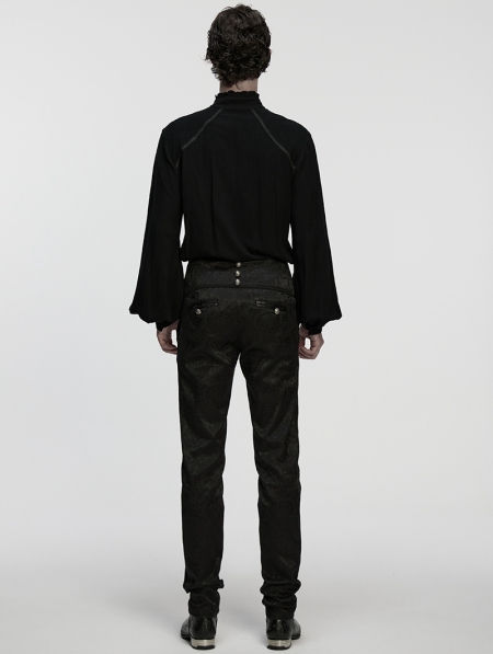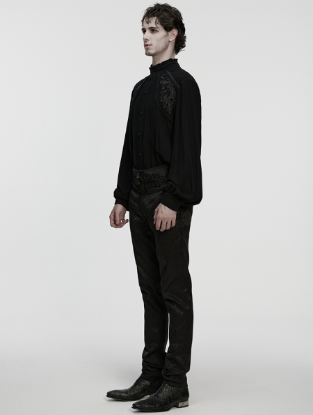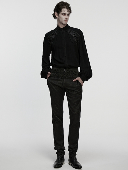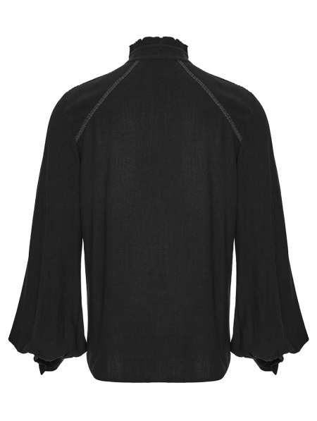 Black Retro Gothic Lace Applique Lantern Sleeves Shirt for Men
