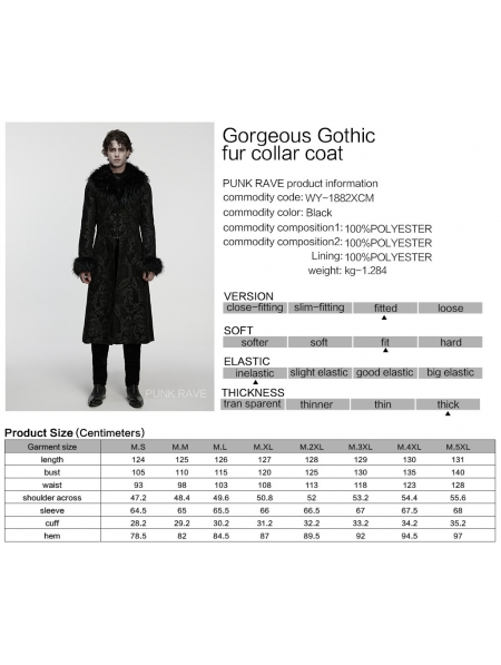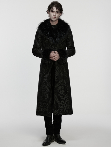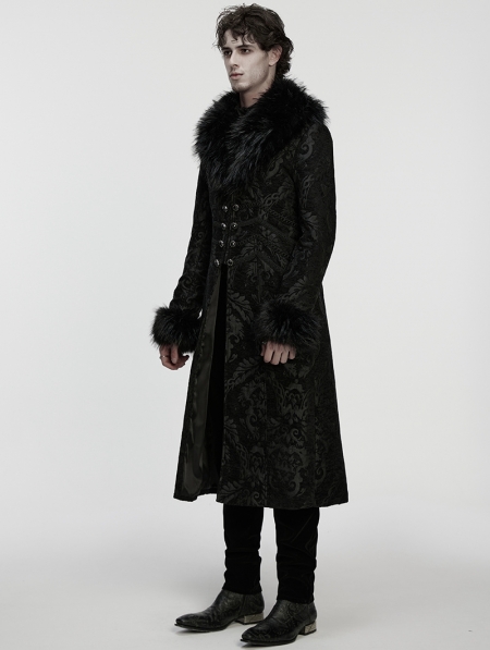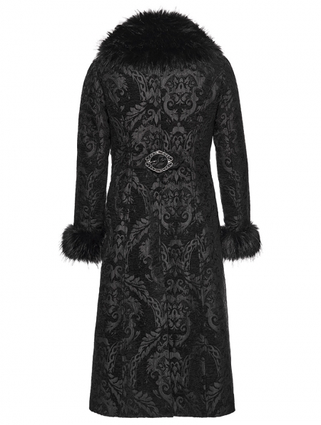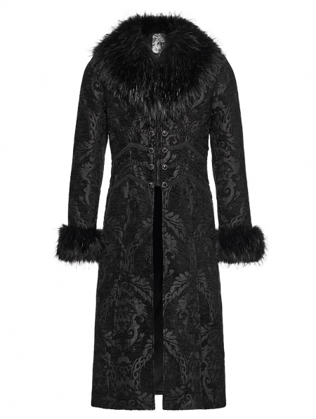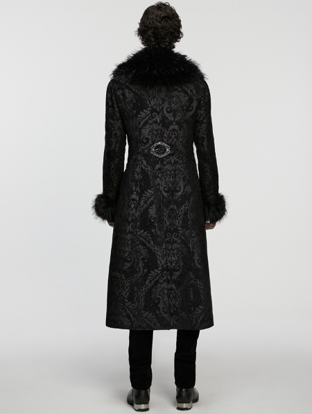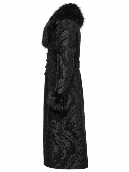 Black Gorgeous Jacquard Gothic Fur Collar Coat for Men