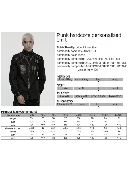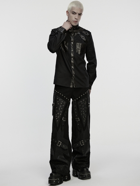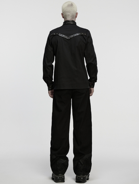 Black Gothic Punk Hardcore Rivets Personalized Shirt for Men