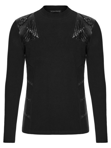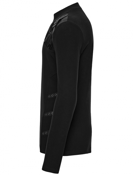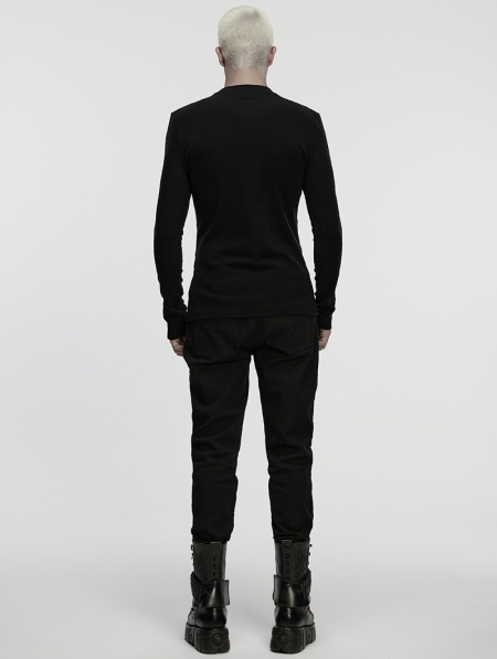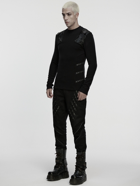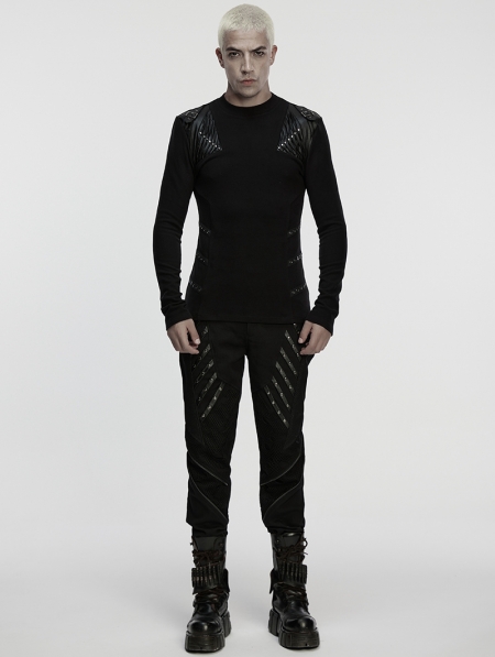 Black Gothic Handsome Punk Splicing Knitted T-Shirt for Men