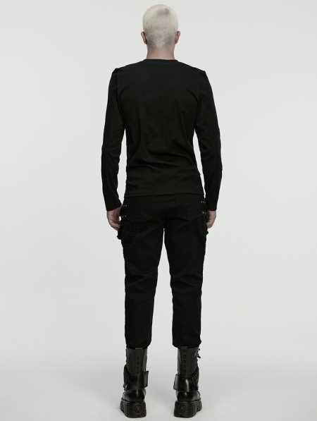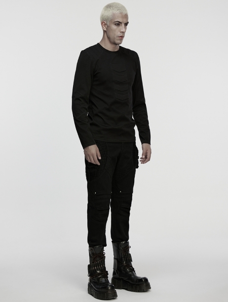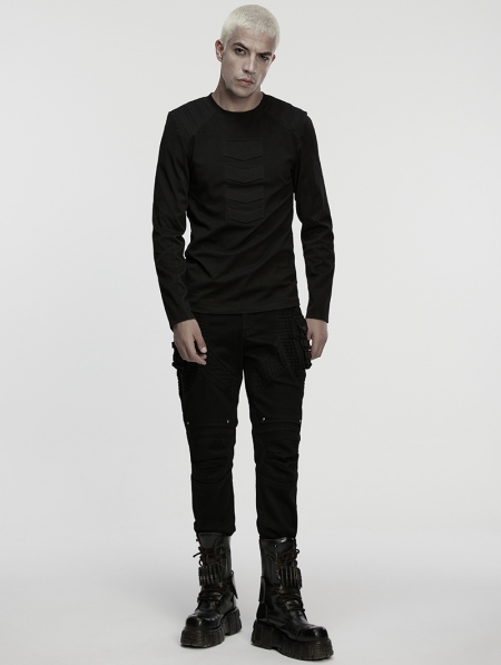 Black Gothic Cyberpunk Long Sleeve T-Shirt for Men