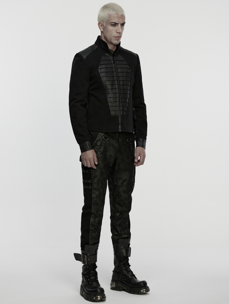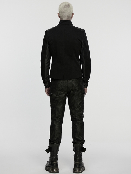 Black Gothic Punk Mottled Printed Pants for Men