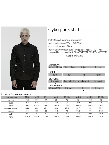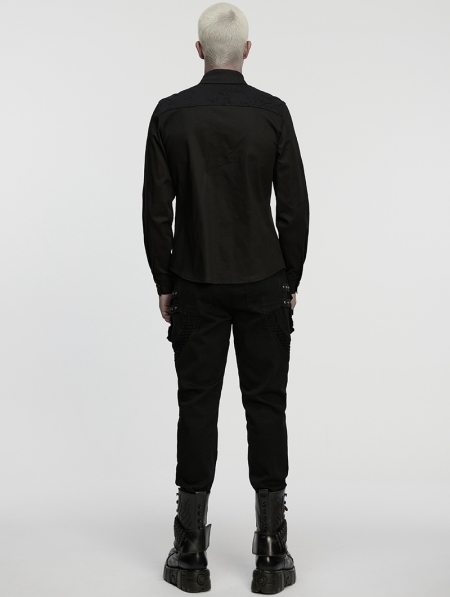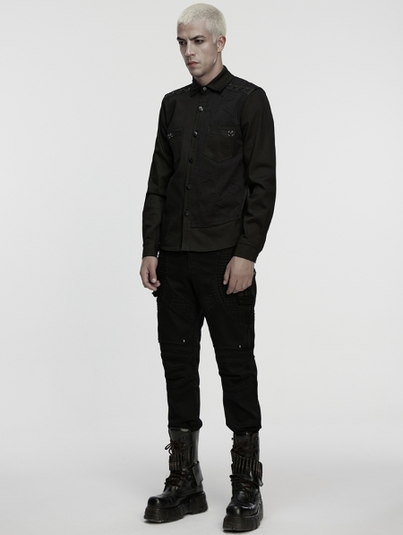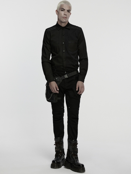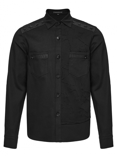 Black Gothic Cyberpunk Studded Shirt for Men