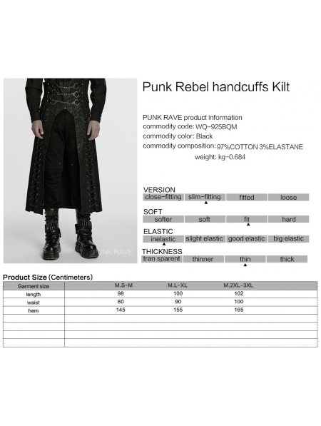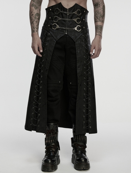 Black Gothic Punk Rebel Handcuffs Kilt for Men