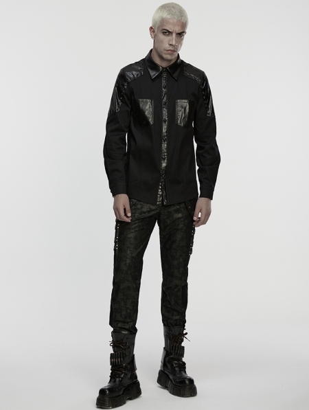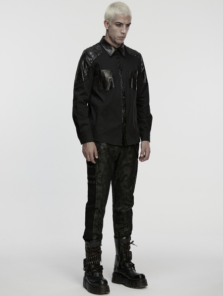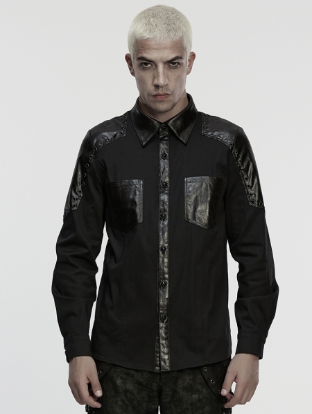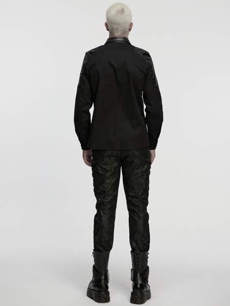 Black Gothic Punk Eyelets Personalized Shirt for Men