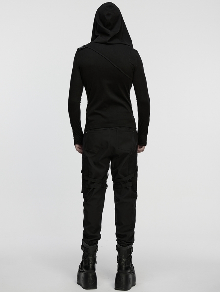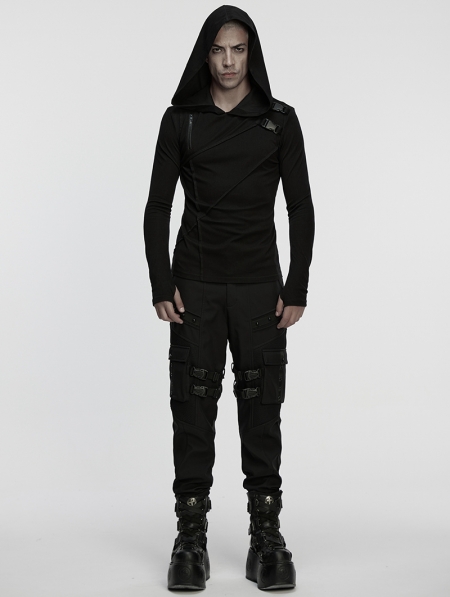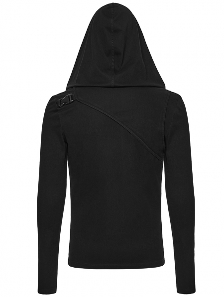 Black Gothic Cyberpunk Asymmetric Hooded T-Shirt for Men