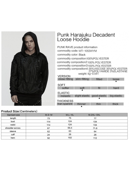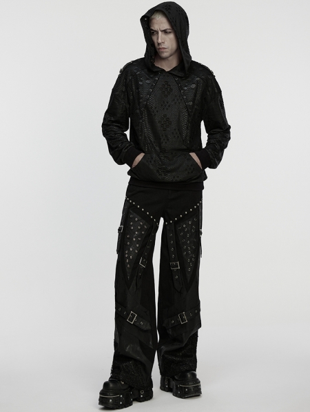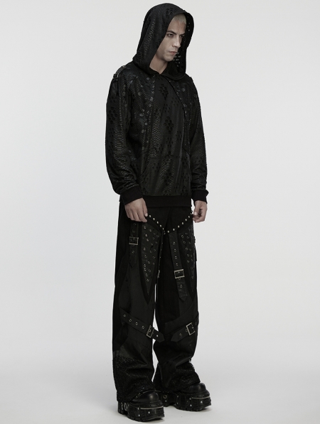 Black Gothic Punk Harajuku Decadent Loose Hoodie for Men