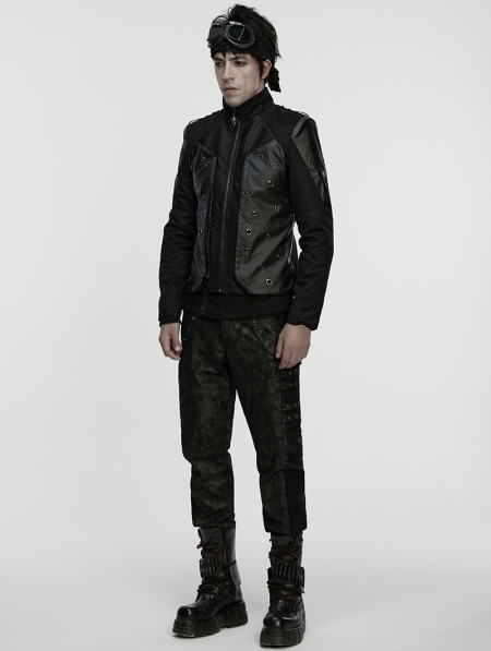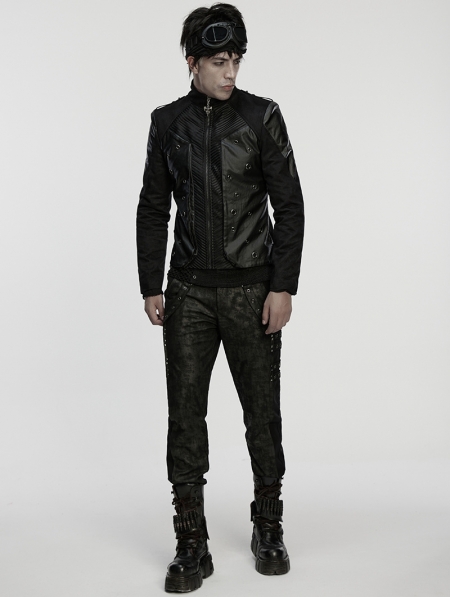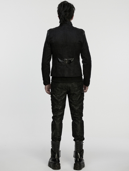 Black Gothic Punk Rock Suede Denim Short Jacket for Men