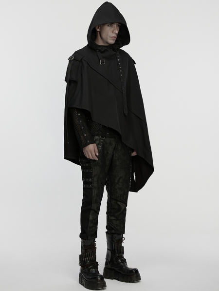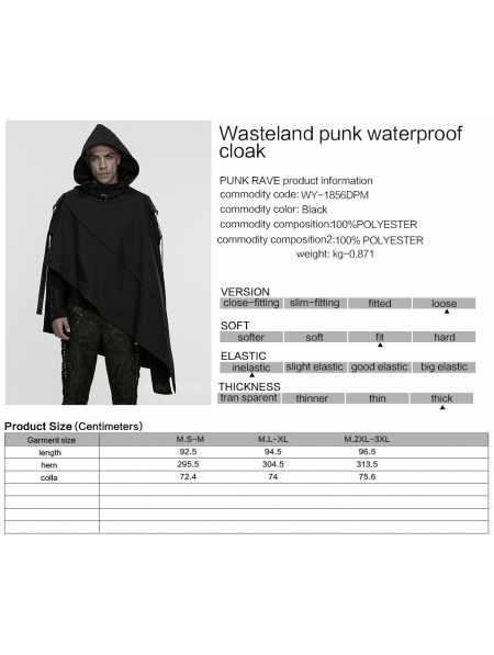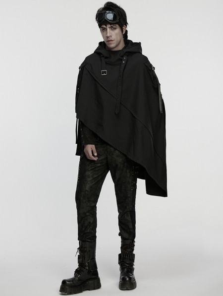 Black Gothic Wasteland Punk Waterproof Irregular Cloak for Men