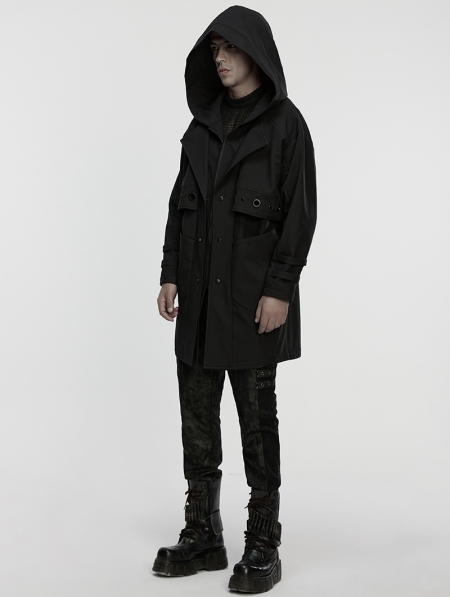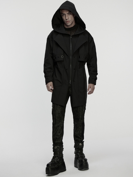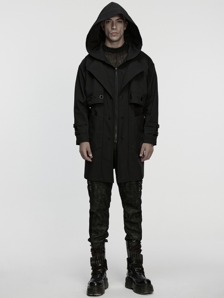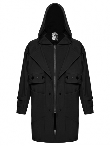 Black Gothic Waterproof Techwear Hooded Jacket for Men