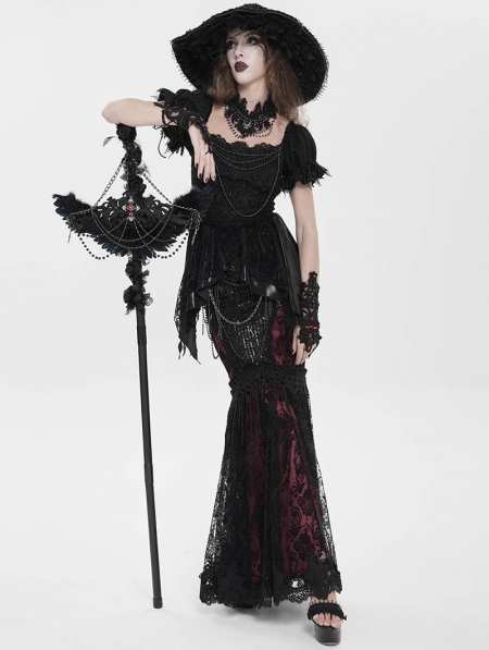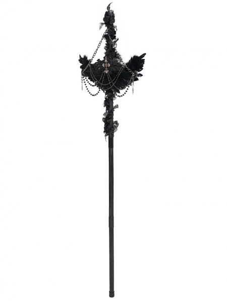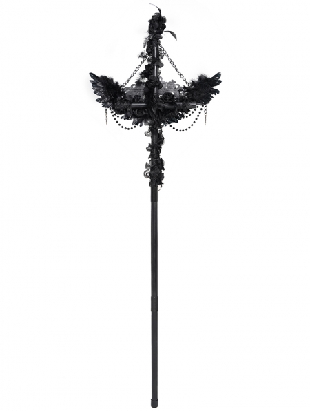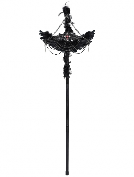 Black Gothic Retro Cross Beaded Chain Feather Scepter