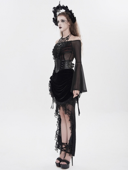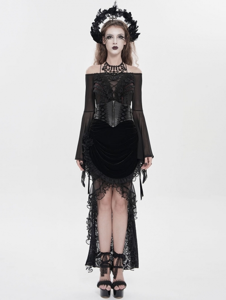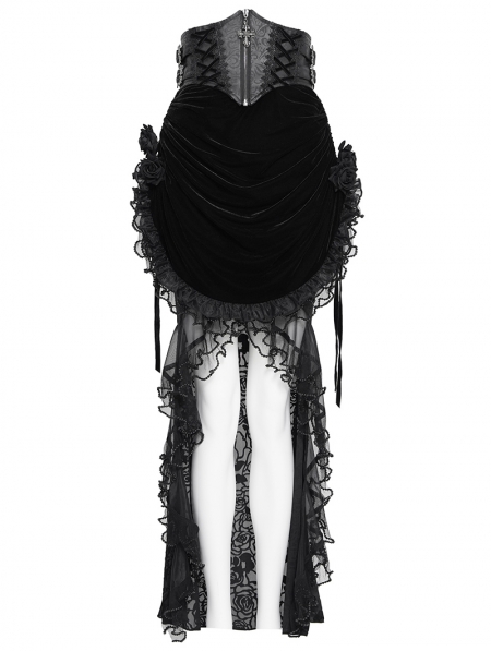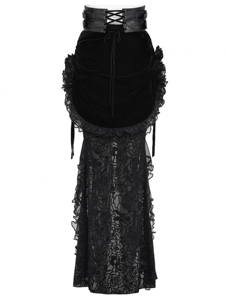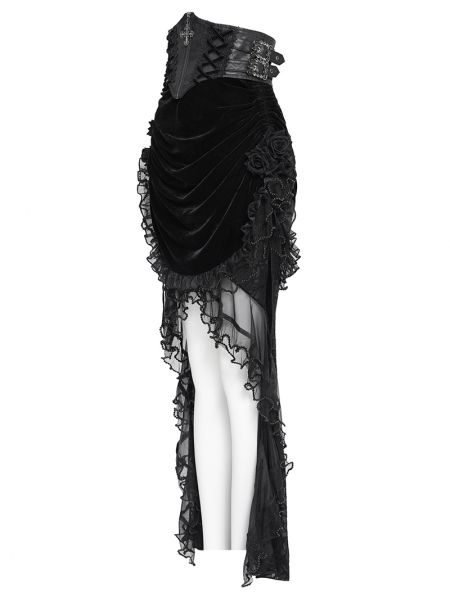 Black Gothic Rose Mesh Velvet High-Low Fishtail Skirt