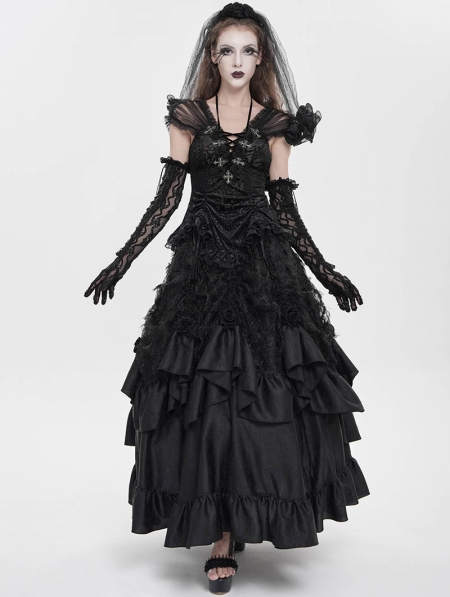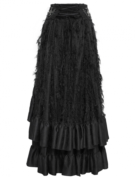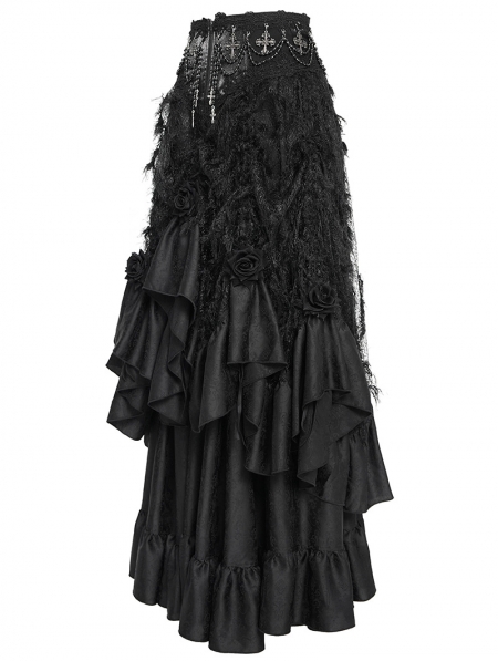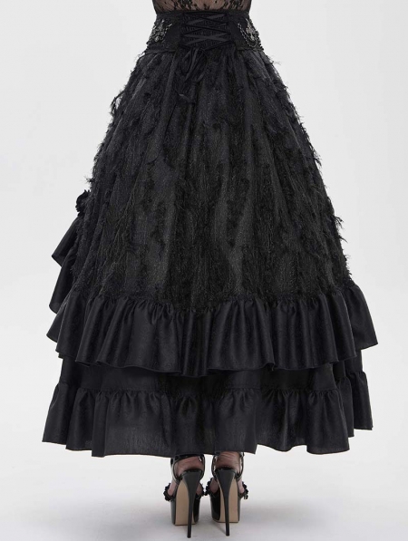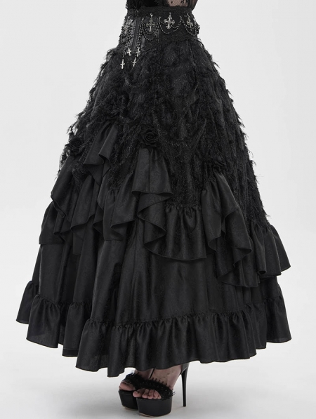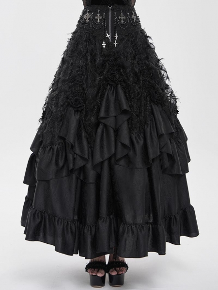 Black Gothic Rose High Waist Layered Ruffle Maxi Skirt
