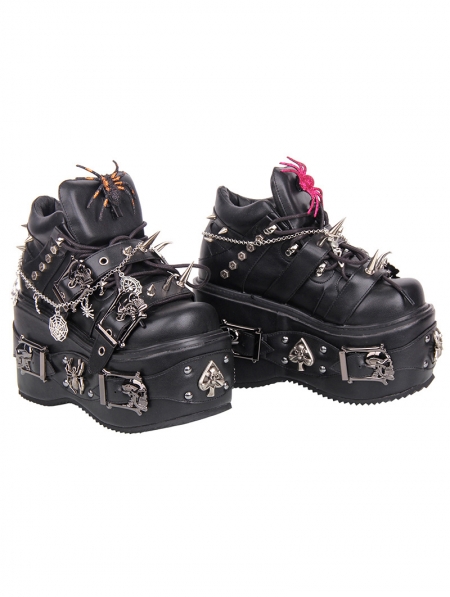 Black Gothic Punk Spiked Spider Decor Platform Ankle Boots