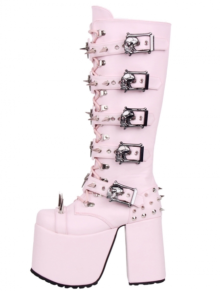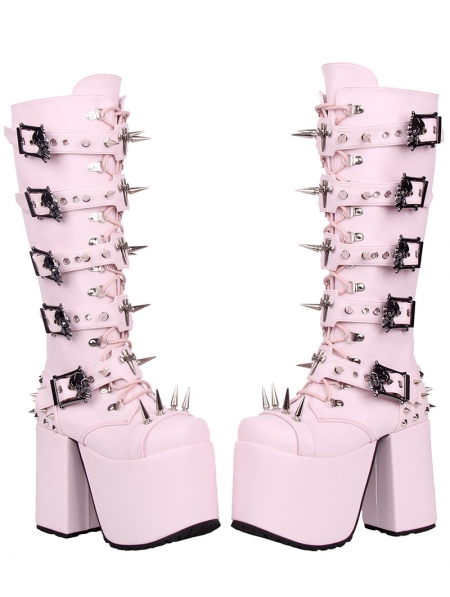 Pink Punk Gothic Lace Up Chunky Platform High Heel Boots
