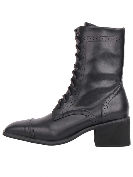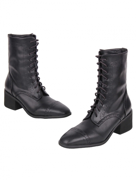 Black Gothic Punk Pointed Toe Lace-Up Leather Boots