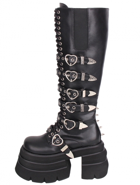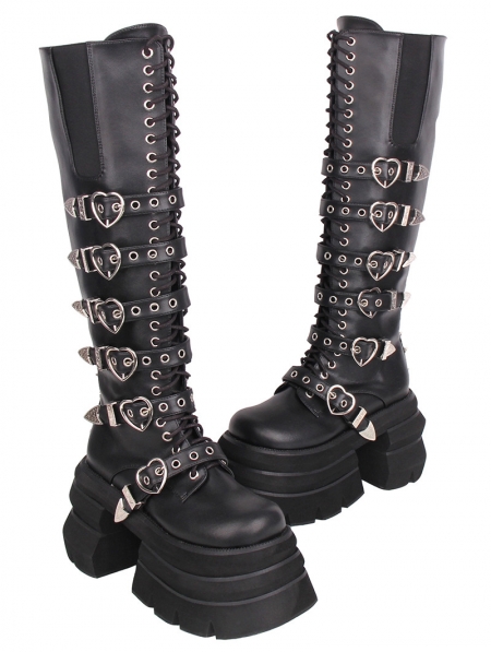 Black Gothic Punk Heart Buckle Stacked Platform Boots