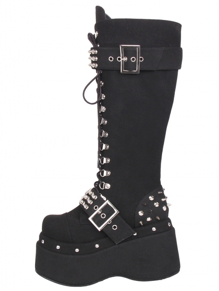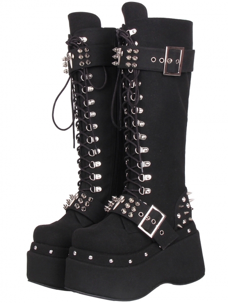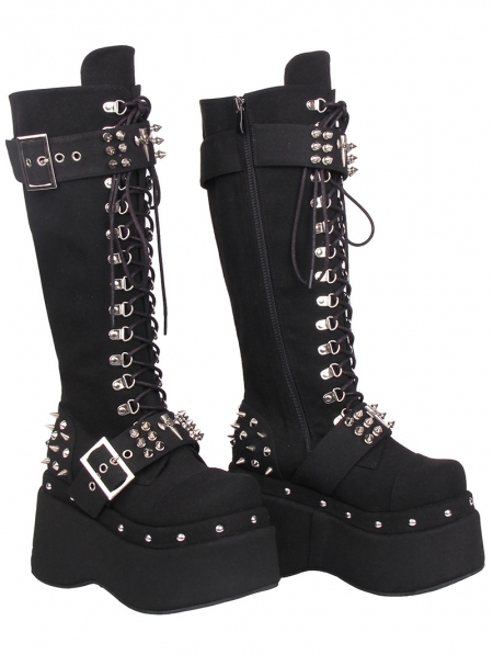 Black Gothic Punk Buckle Rivets Double Platform Boots