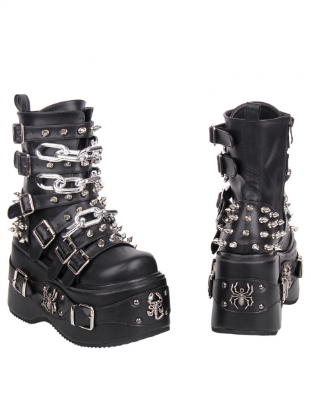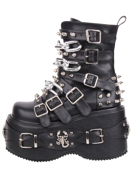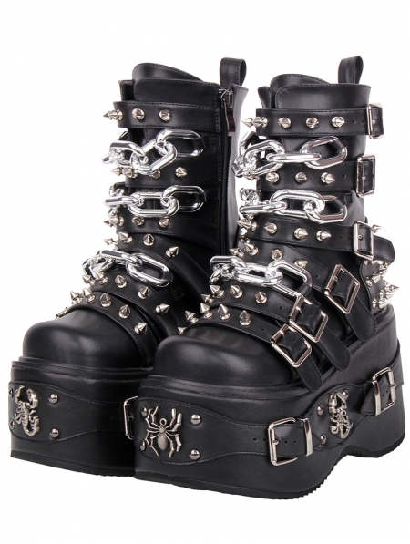 Black Gothic Punk Studded Belt Strap Platform Boots