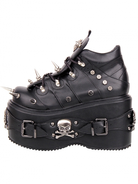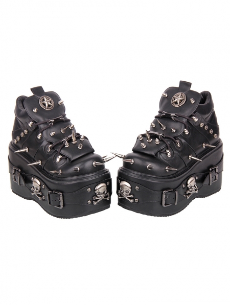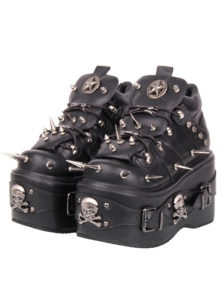 Black Punk Gothic Skull Studded High Platform Ankle Boots