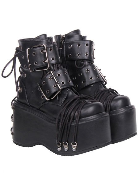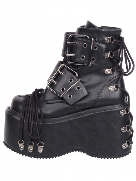 Black Gothic Punk Belt Buckle Platform Combat Ankle Boots