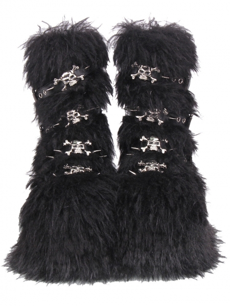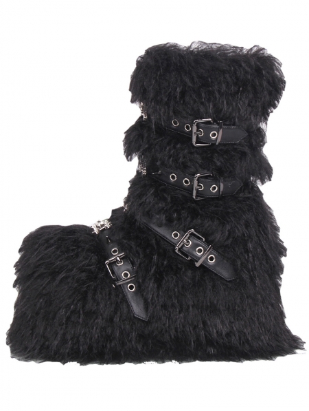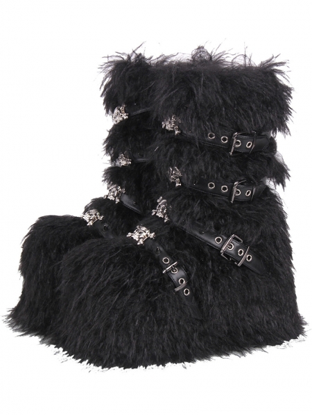 Black Gothic Punk Fluffy Faux Fur Platform Boots with Straps