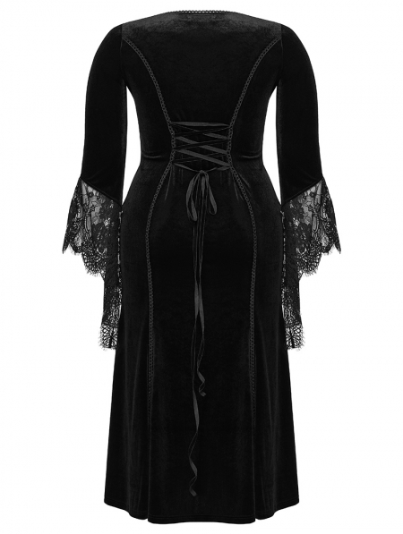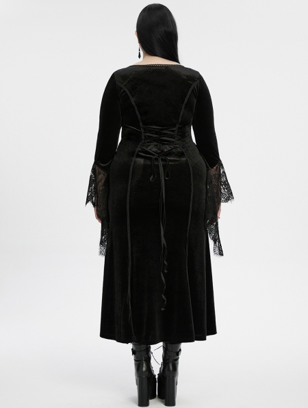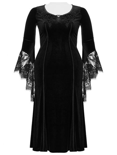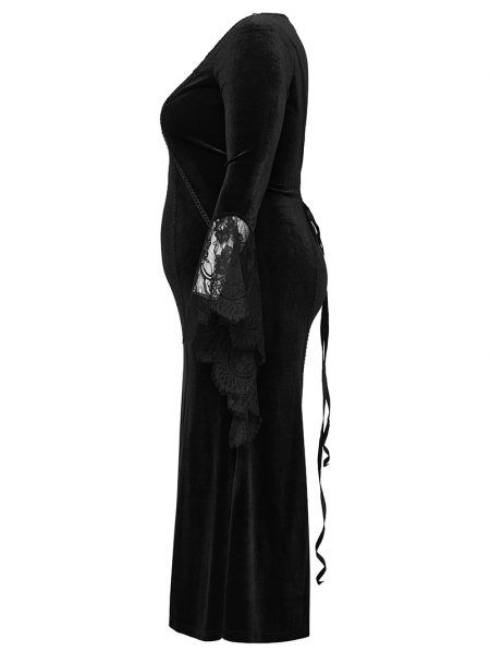 Black Gothic Velvet Long Sleeve Fishtail Plus Size Maxi Dress